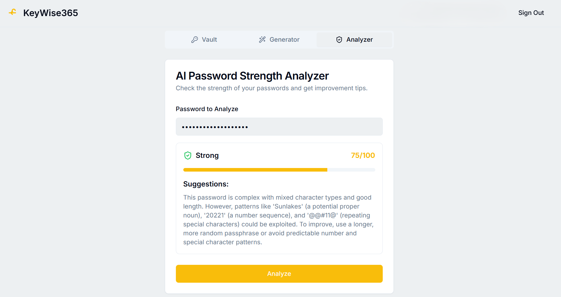 KeyWise365 is an AI-powered password manager that securely generates, stores, and analyzes your credentials for smarter digital protection.